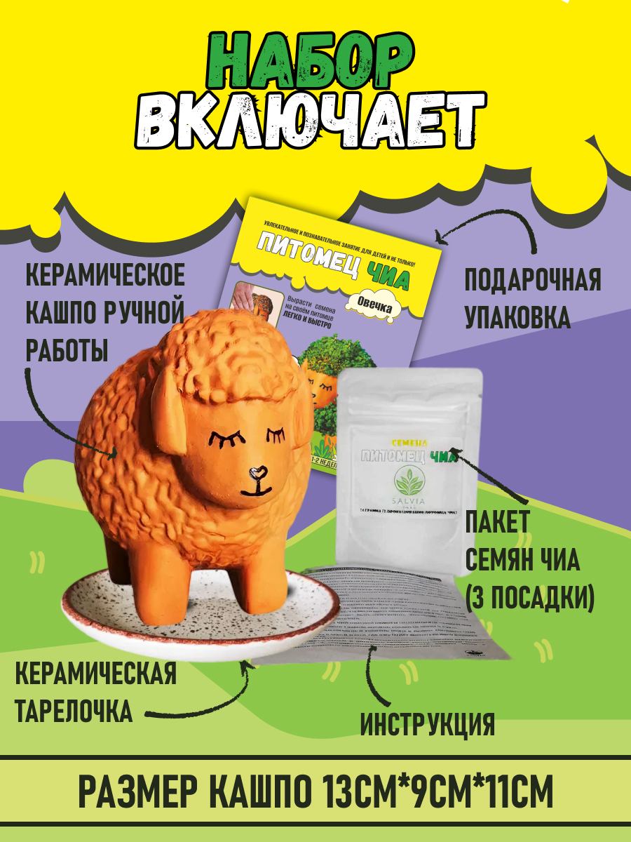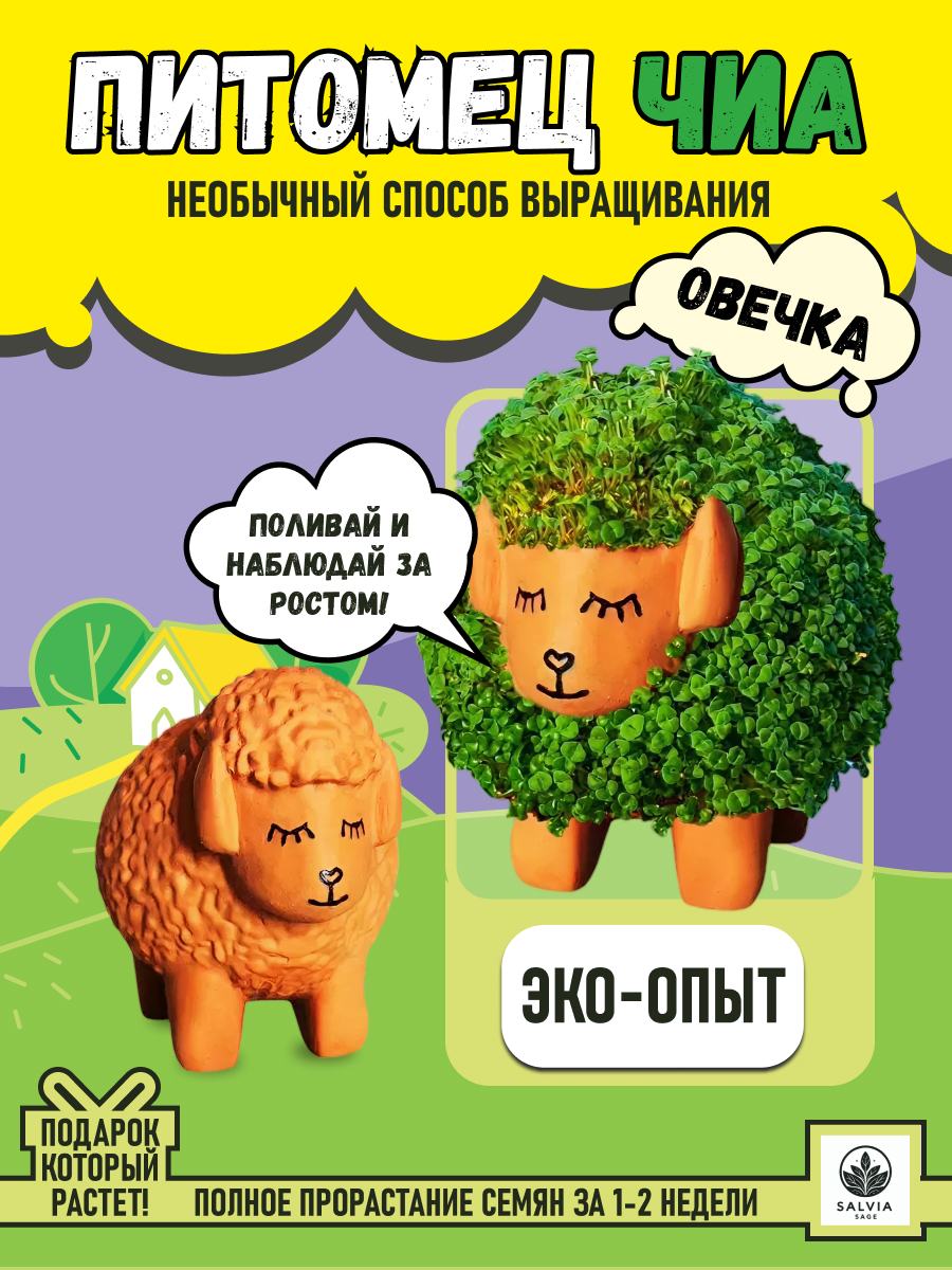 - Отличная идея для подарка! Керамическая овечка с растущей травой чиа понравится и детям и взрослым.
